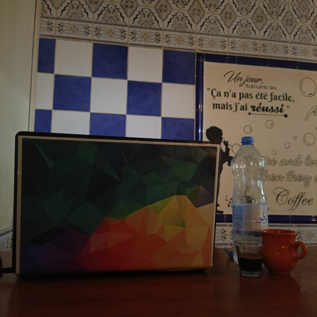 جلست مقابل الجامعة العربية للعلوم وهي جامعة خاصة، وجدت بقعة شمس فجلست لأتشمس ، أشعر بحاجة للتشمس هذه الأيام ، لكن إنتبهت أن بجانبي مجموعة مقامرين فقد عرض علي أحدهم أن يسجلني في برنامج قمار إلكتروني، بقيت أتحدث معهم فأحدهم أستاذ تعليم ثانوي قبض أجره كاملا بالأمس حسب حديثه ولم يبق له مليم ،والآخر يعمل وكيل عقاري والآخر يعمل مقاول إنشاءات، لم أتحدث معهم طويلا فقد أخبرني أحدهم بأنهم يلعبون منذ سنوات، غادرت مباشرة … حين عدت للمنزل وجدت حلقة من سلسلة مرايا عن صديقين إشتركا في ورقة يانصيب، نفس الشيء قمار لكن كان القمار أسبوعيا وهذا القمار يومي … إستفسرت عن كيفية شحن الحساب، هناك شاب يجلس مع فتاة تعطيه المال ويرسل لك كود فيه المبلغ …