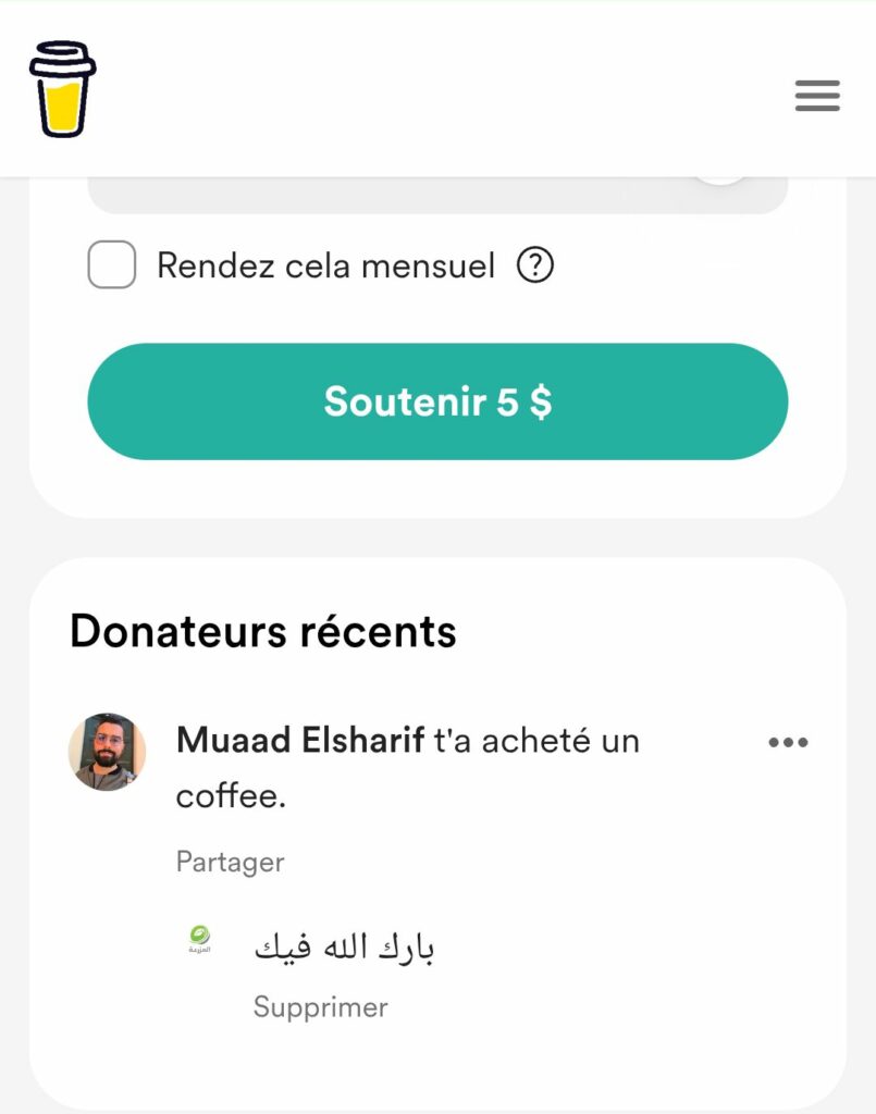 حصلت على أول قهوة من زر buy me coffe