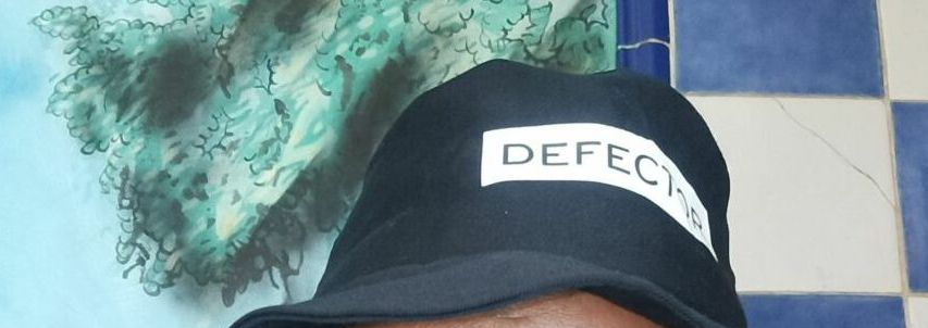 كنت أرتدي صدفة مظلة رأس مكتوب عليها defector. قمت بنزعها حين مرت المظاهرة فقد يصورني أحدهم ، الكلمة تعني منشق…