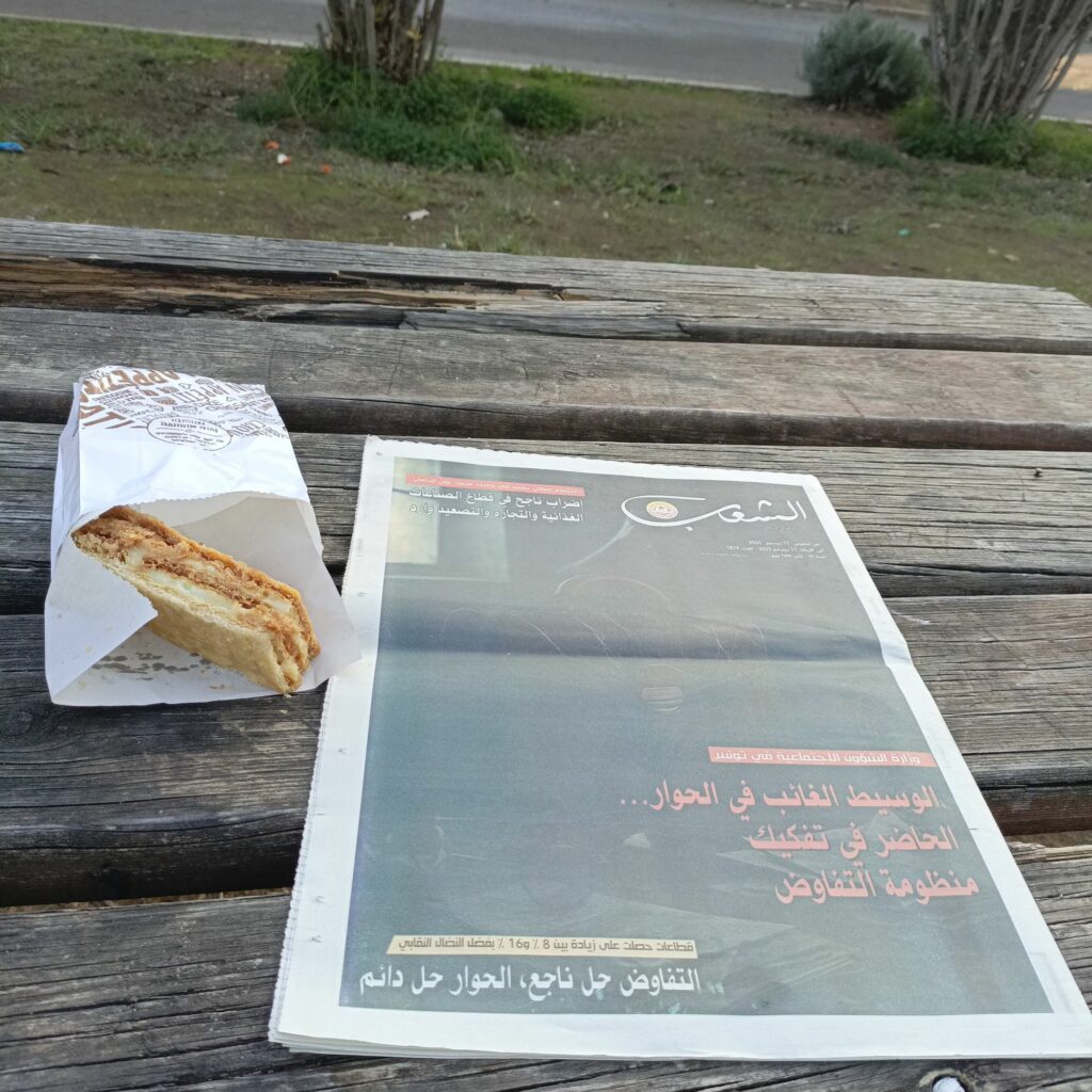 كذلك إشتريت جريدة الشعب وهي الجريدة الرسمية للإتحاد العام التونسي للشغل…