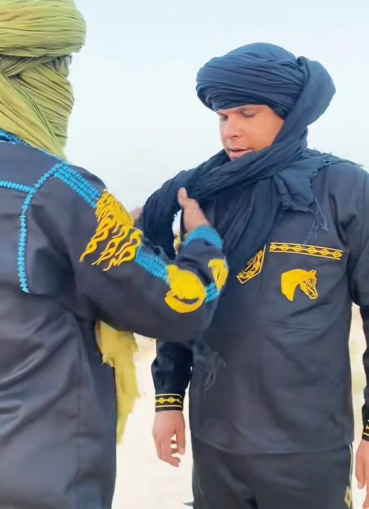 أقوم بتغطية رأسي بمظلات غربية لكن غطاء الرأس الرسمي لدينا عمامة بيضاء لكن لا تغطي الوجه …