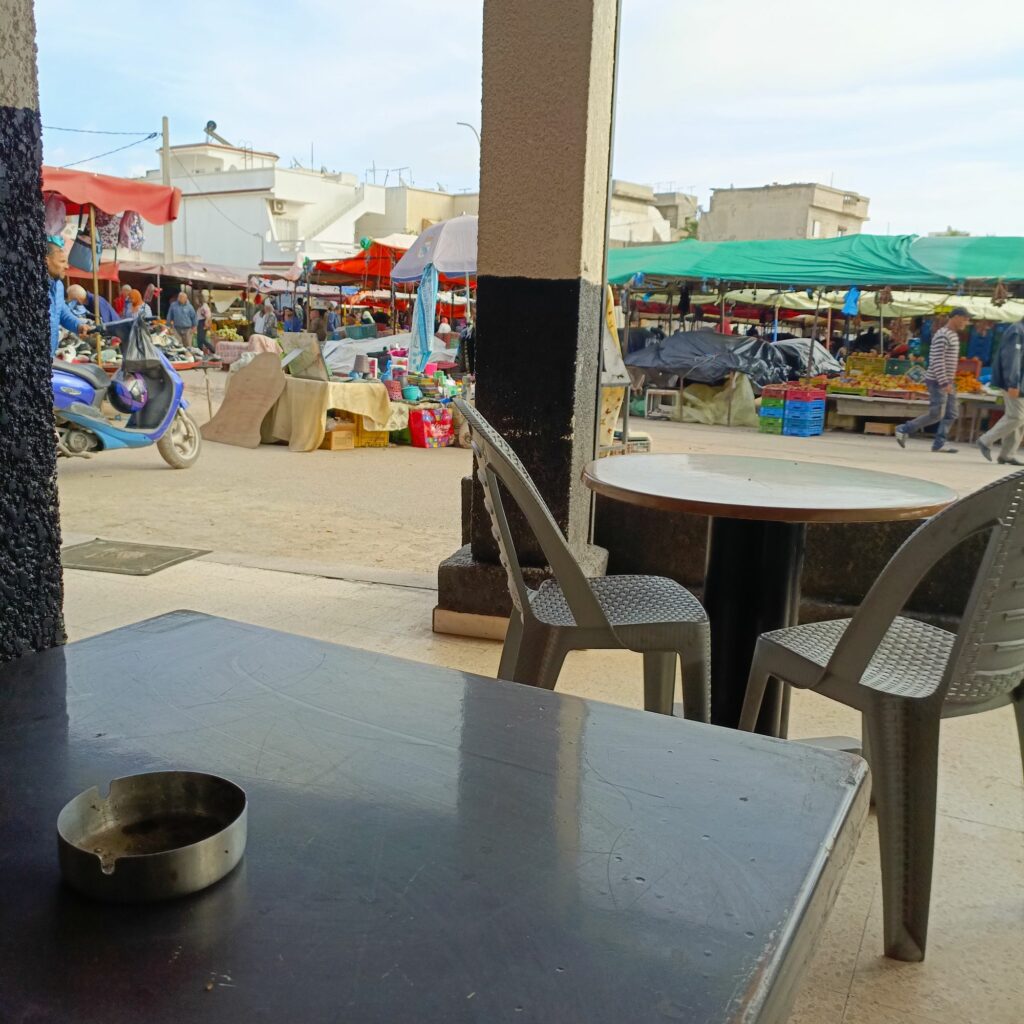 المقهى تحت قاعة رياضة وصاحب القاعة يضع صورته مكتوب عليها أقوى إنسان باللغة الفرنسية، يبدو من أبطال كمال الأجسام في التسعينات … بعدها أذن العصر فدخلت مسجد الإنطلاقة…