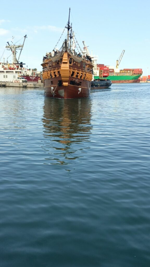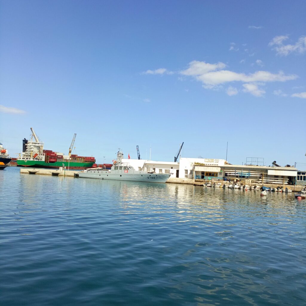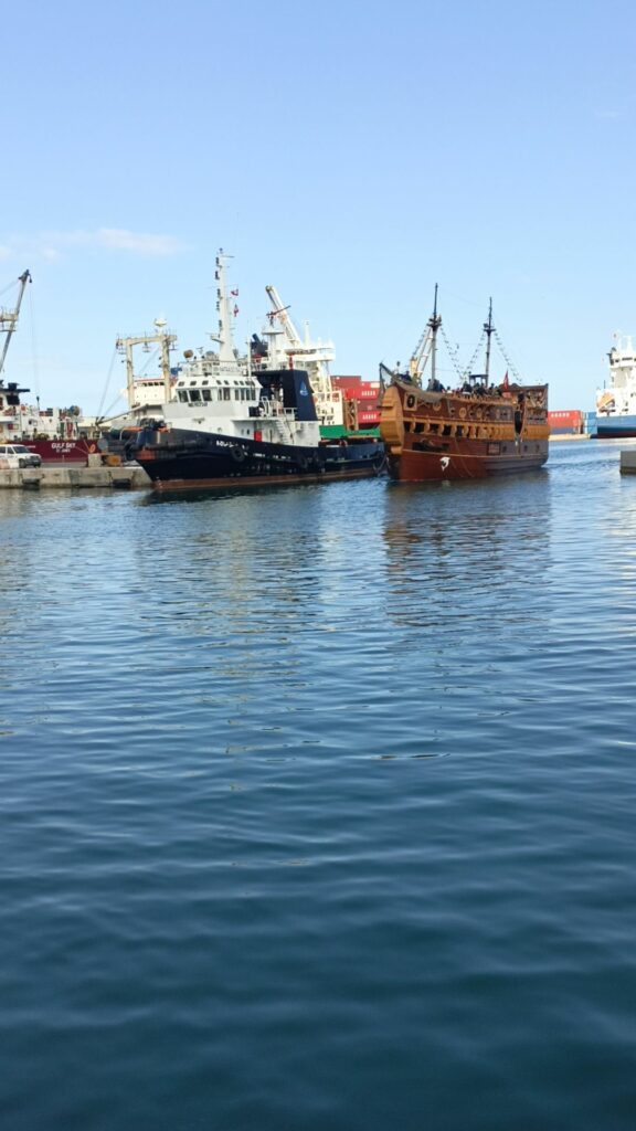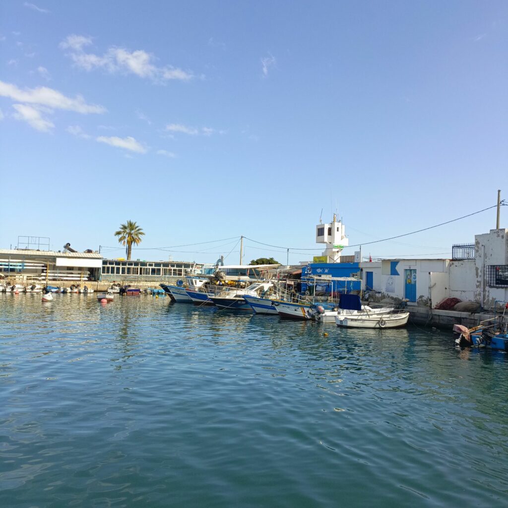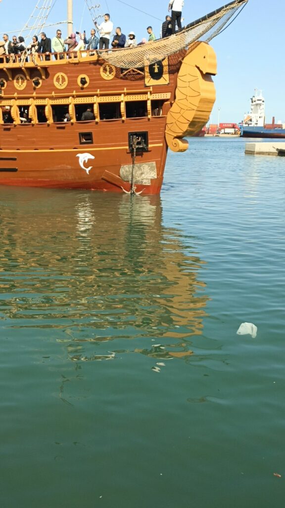هناك سفن تقدم جولات في البحر ، تشبه سفن القراصنة … سعر الرحلة 25 دينارا وتدوم ساعتين ونصف تقريبا 8 دولارات… جائت مجموعة من الحافلات التي تقل سياحا جزائريين ، إحدى السفن كانت تدخل المرفأ وتشغل أغنية راي…