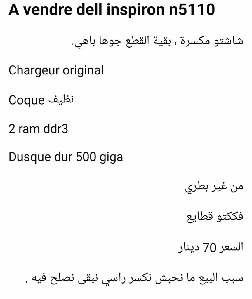 وضعت إعلانا على ماركت بلاس الفيسبوك وفي مجموعة لمصلحي الحواسيب …