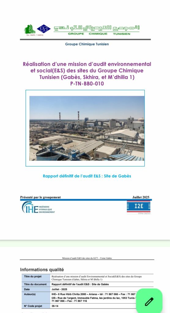 ولاية ڨابس كانت واحات غناء فقررت الدولة بناء مصنع تكرير فوسفاط و إستخراج حامض الفوسفور والأمونياك وعدة مشتقات من الفوسفاط لكن هناك مخلفات تسمى الفوسفوجيبس يتم رميها في البحر كما تصدر إنبعاثات غازية سامة منذ سنة 1972 تسببت في أمراض تنفسية وسرطانات، المجمع الصناعي مهم لميزانية الدولة وفي نفس الوقت الأجيال الجديدة أكثر وعيا بالبيئة فلا يمكن قمعها …