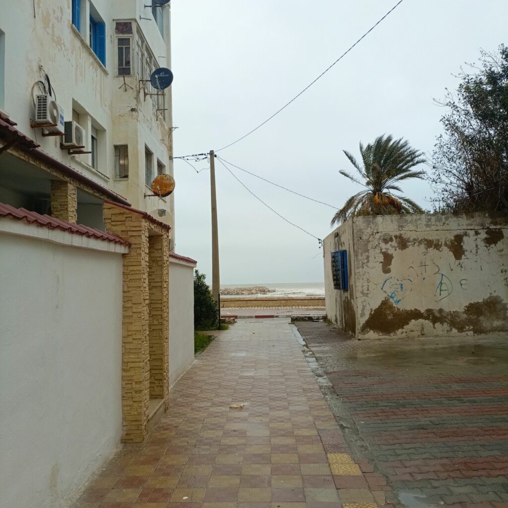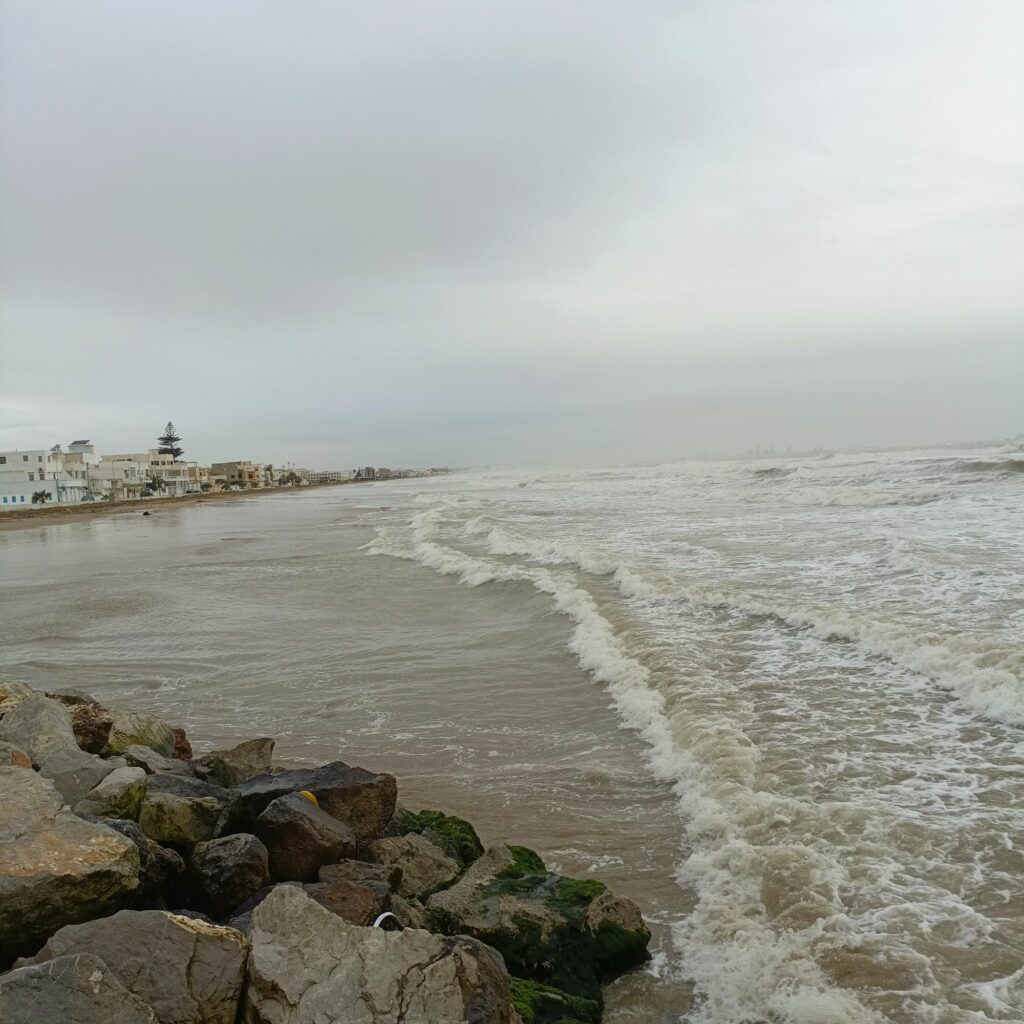 اليوم ذهبت لموعد في مدينة حمام الأنف يخص العمل ، ثم لدي موعد آخر وسط العاصمة مع زبون محتمل لديه مشروع برمجي لمنصة لتعليم البرمجة للصغار…أخذت معي مطريتي لأن المطر ينهمر بغزارة ، كما نزلت ثلوج في بعض المناطق وهو حدث نادر فأصبح الطقس باردا…هنا أنسب مكان لتلتقي شخصا حتى لموعد عمل هو المقهى، في الموعد الثاني جلسنا في مقهى مخصص لغير المدخنين ويجلس فيه عدد من الفريلانسر… ألتقطت صورا من شاطئ حمام الأنف وفيديو لكاسرات الأمواج…
